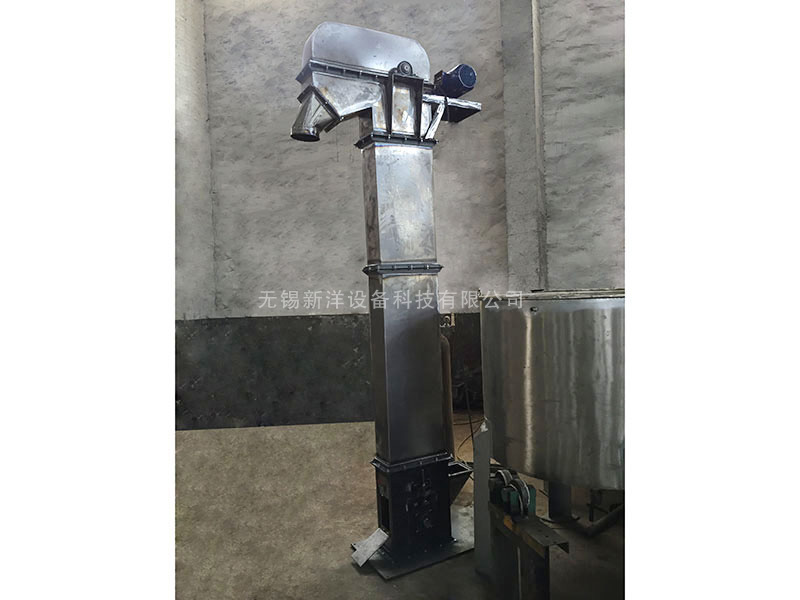 主要由機頭、機筒、機座、料斗和鏈輪組成。電機傳動鏈條,使鏈條上固定料斗挖取物料后提升,繞過頭輪后向料口排出。
